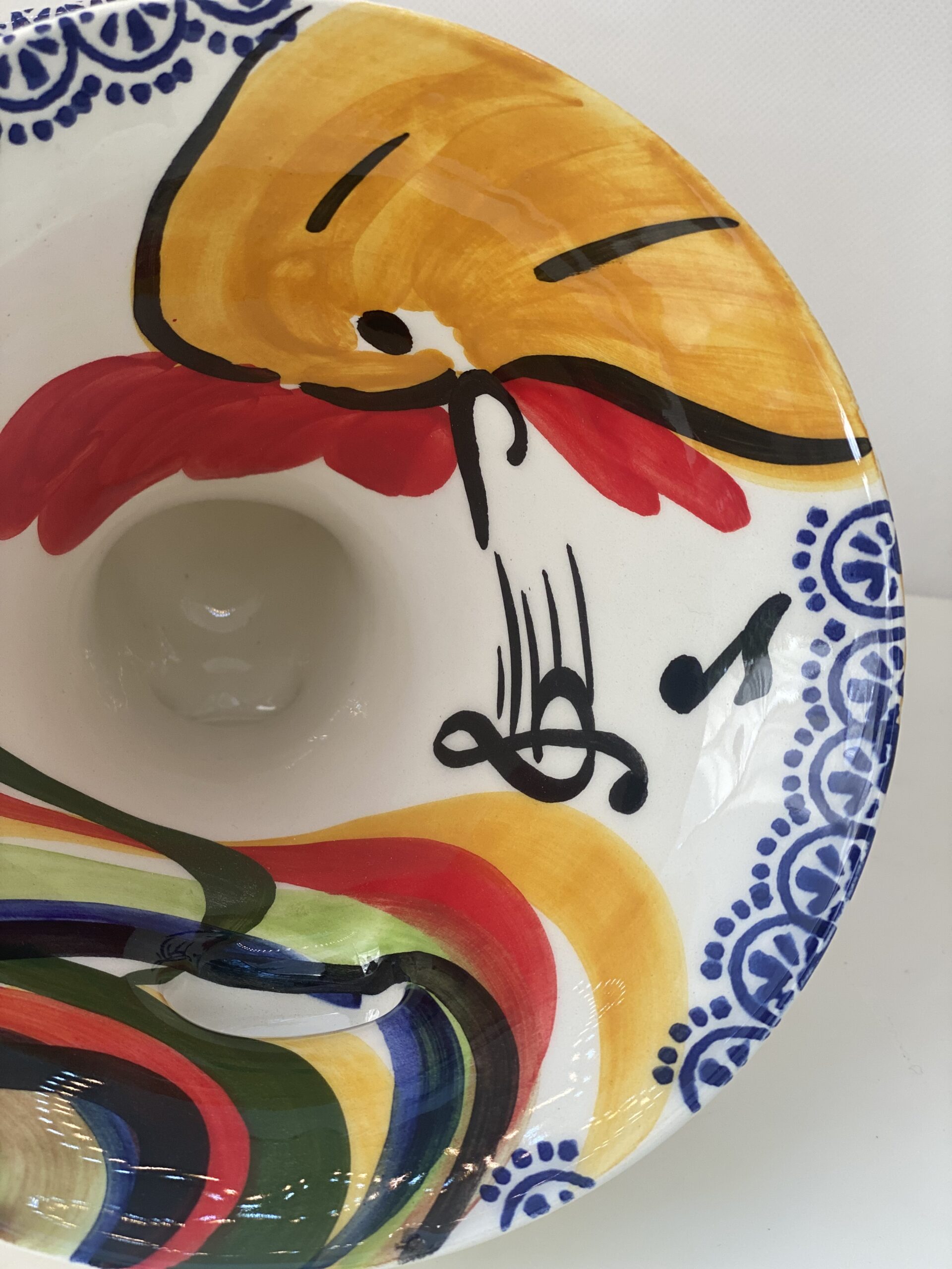 Come tutti i nostri prodotti è personalizzabile, questa è la versione decorata con il decoro del gallo scomposto