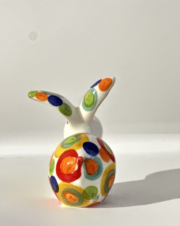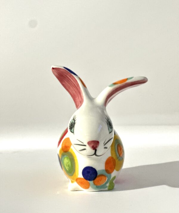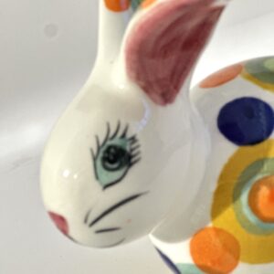 Coniglio in ceramica, realizzato e dipinto a mano nel nostro laboratorio artigianale.