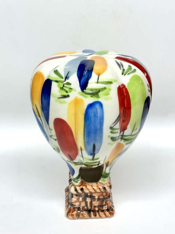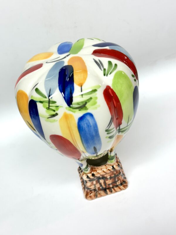 Mongolfiera in ceramica realizzata e dipinta a mano, è disponibile nelle altezze di 10cm, 18cm, 27cm, 32cm.