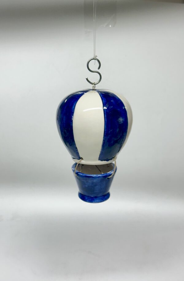 Mongolfiera in ceramica realizzata e dipinta a mano.