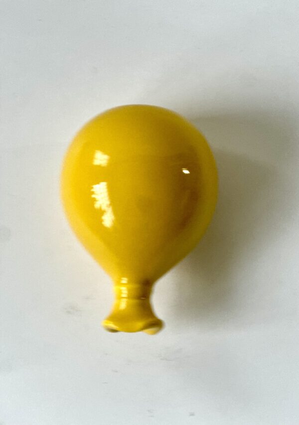 Palloncino in ceramica realizzato a mano nel nostro laboratorio artigianale e colorato di giallo.